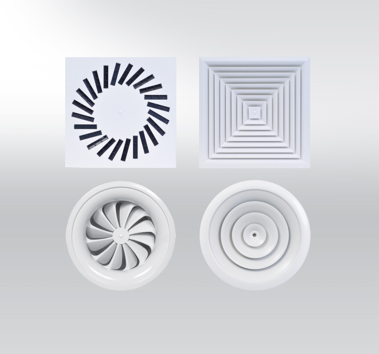 Verteilungselemente sind als Endelemente in Lufttechnik für Zu- oder Abluft eingesetzt.